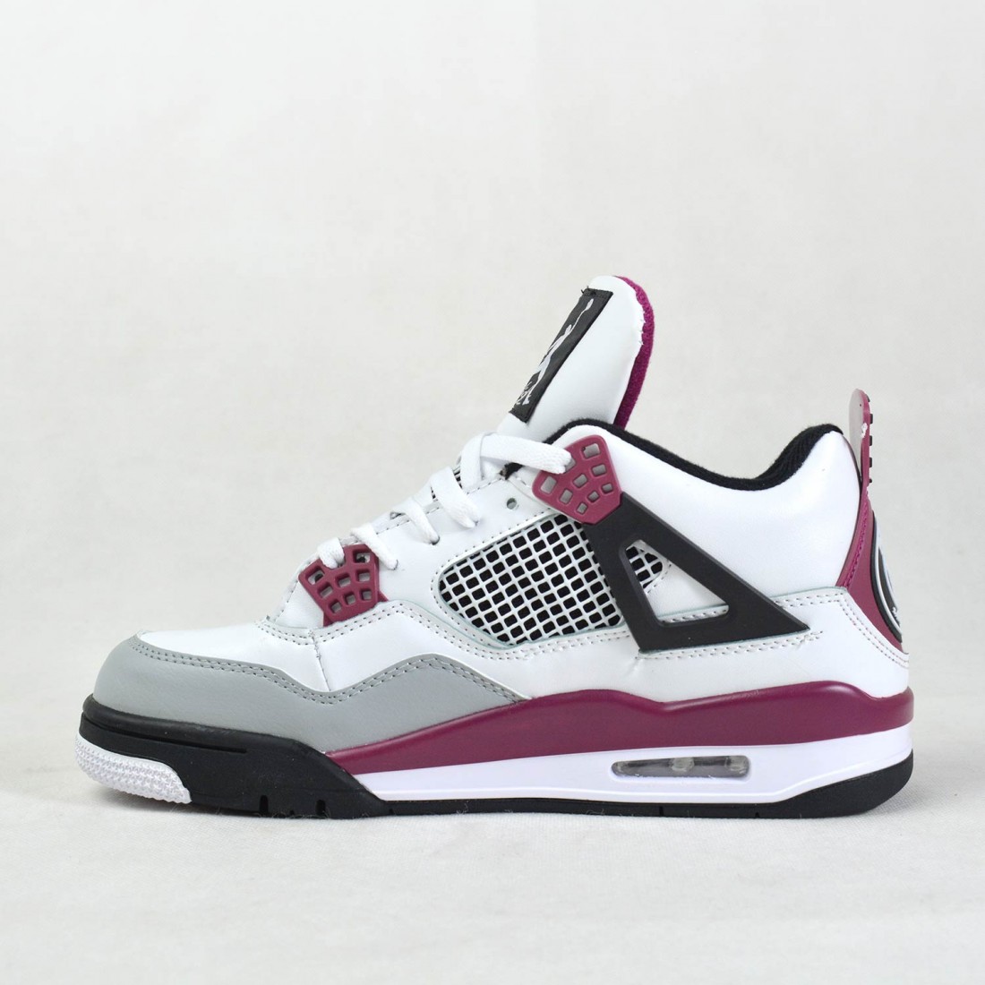 6.5. $448. 7. $333. Facts. Made for big kids, the Paris Saint-Germain x Air Jordan 4 Retro GS 'Bordeaux' continues the partnership between the French professional football club and Jordan Brand. Tinker Hatfield's retro mid-top features a white leather build with contrasting black and maroon accents littered throughout the upper and midsole.